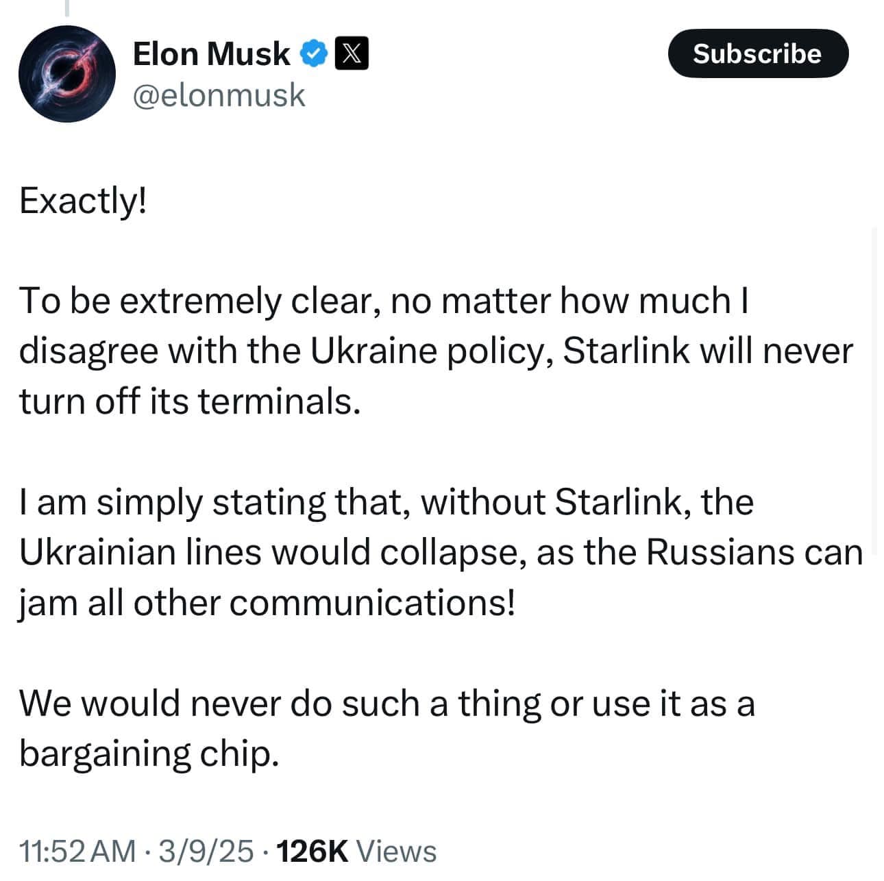TT Trump và cả Elon đều kg có ý định cắt Starlink của Ukraine. STOP SPREADING FAKE NEWS!! Shame on you!!