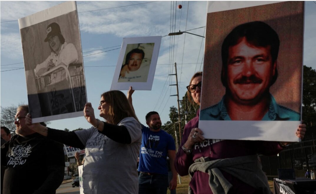 Những người biểu tình giơ cao biểu ngữ bên ngoài nhà tù Nam Carolina - nơi Brad Sigmon bị hành quyết. Ảnh: Reuters.