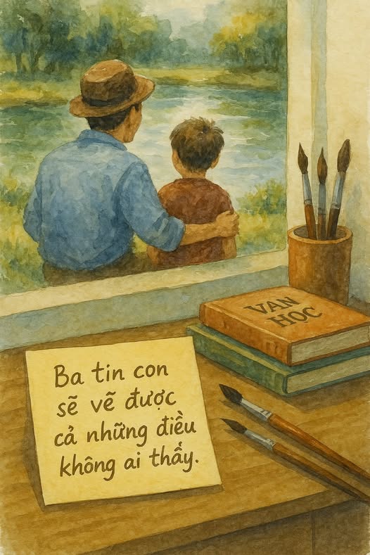 Sáng hôm sau, thay vì mắng con, ông Nam chỉ lặng lẽ đặt cuốn sách “Nhật ký Anne Frank” và một cuốn truyện tranh tiếng Anh lên bàn học của An, kèm một tờ giấy nhỏ: “Con thử đọc để lấy cảm hứng cho tranh mới nhé. Ba tin con sẽ vẽ được cả những điều không ai nhìn thấy.”