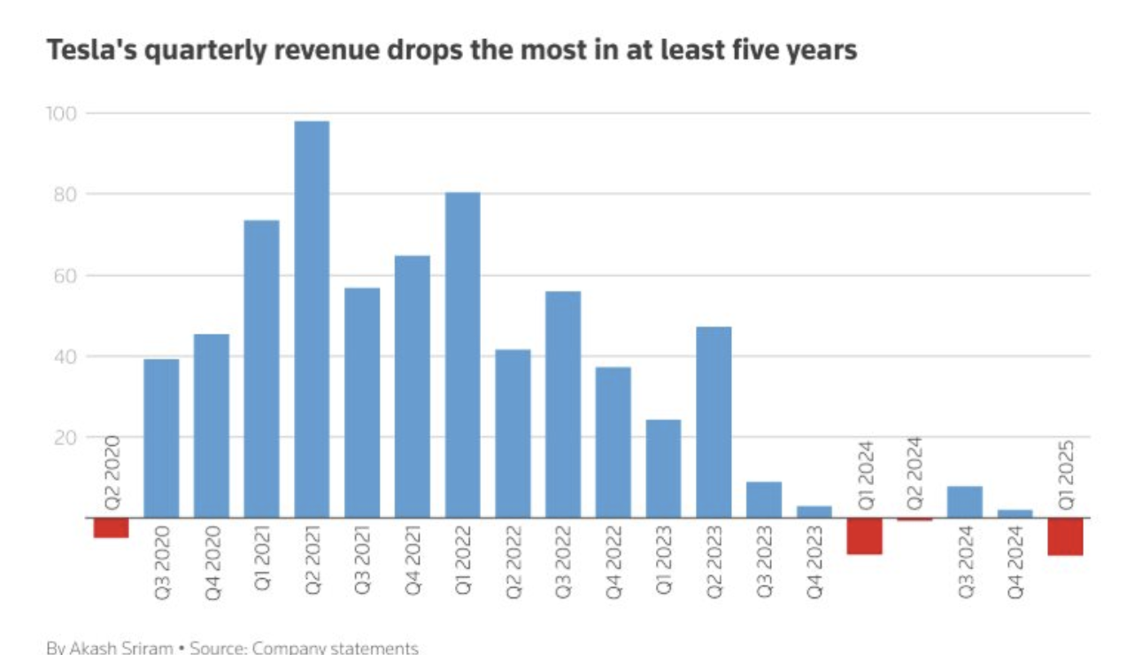 Tháng 4/2025, doanh số Tesla tại 32 quốc gia EU giảm tới 49%, trong khi tổng thị trường xe điện tăng hơn 28% – dấu hiệu rõ ràng cho thấy hãng đang bị cạnh tranh khốc liệt từ các thương hiệu Trung Quốc và châu Âu.