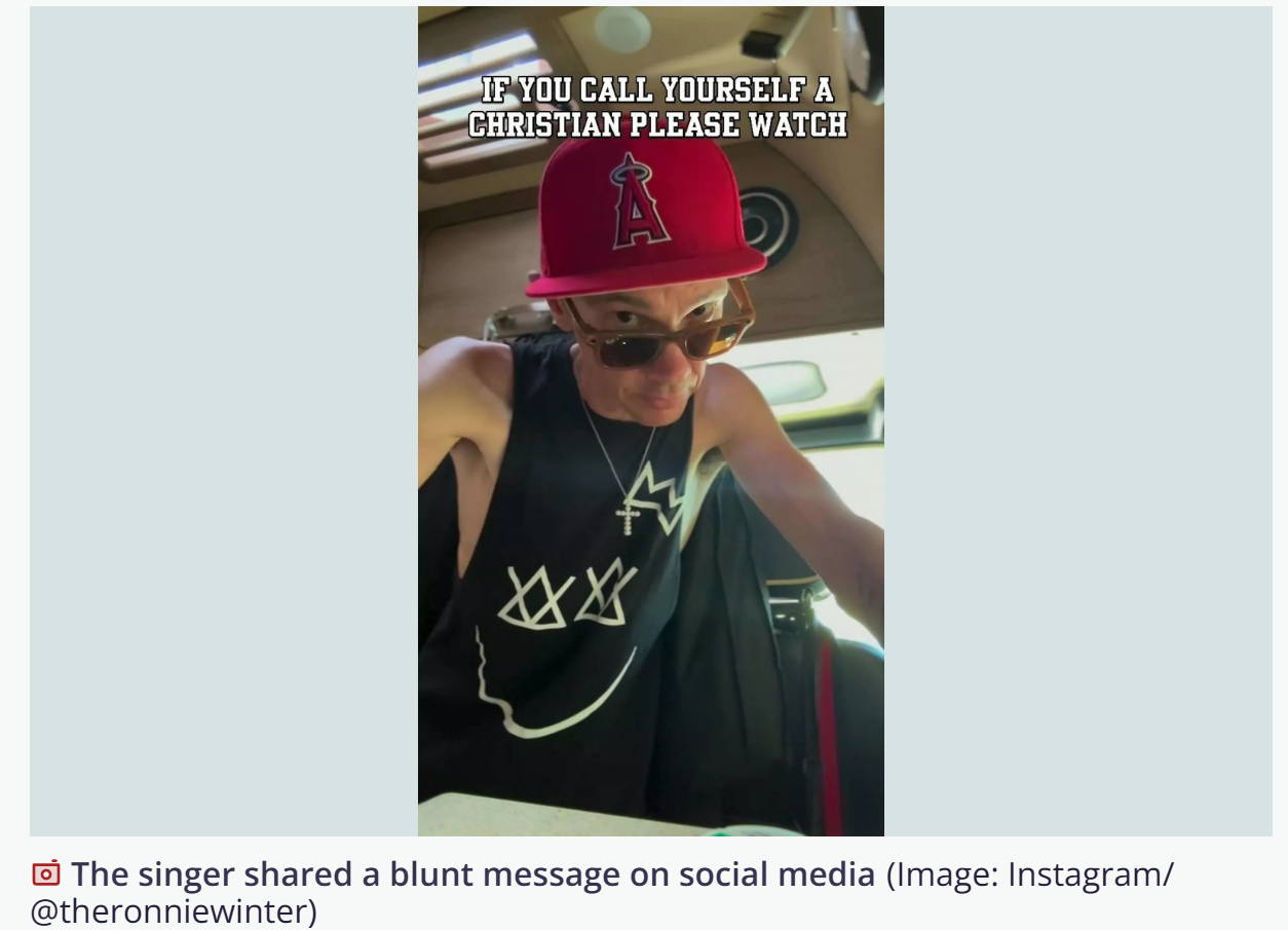Tuy nhiên, trong một video trên Instagram gần đây, ca sĩ chính Ronnie Winter đã tuyên bố rằng những người bỏ phiếu cho Trump "không được phép" đến các buổi biểu diễn của họ - một quy tắc mà anh ấy nói áp dụng "mãi mãi, không chỉ trong bốn năm" nhiệm kỳ tổng thống thứ hai của Trump. Trong tuyên bố của mình, ca sĩ chính 42 tuổi, một người theo đạo Thiên chúa, tuyên bố, "Xin chào, tôi là Ronnie Winter. Tôi hát cho Red Jumpsuit Apparatus và tôi thực sự làm theo những gì Chúa Jesus nói. Nếu bạn là một người theo đạo Thiên chúa và bạn đang xem điều này và bạn đã bỏ phiếu cho Donald Trump, thì bạn thật đáng xấu hổ."