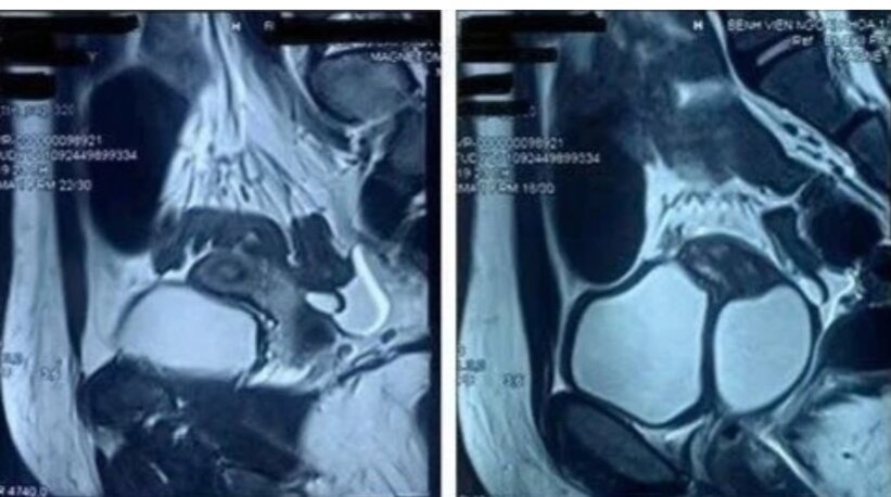 Hình ảnh tử cung bên lành và tử cung bên bệnh trên cộng hưởng tử. Ảnh: BVCC.