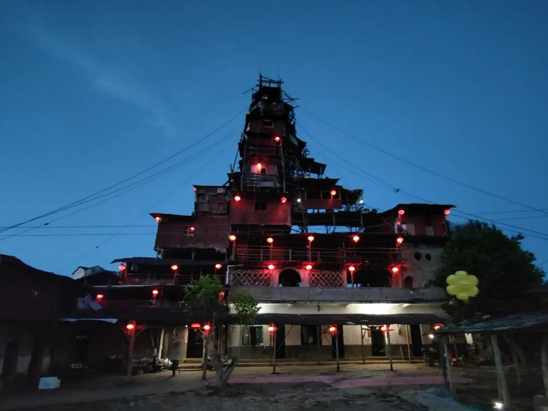 Tới nay, ngôi nhà đã cao tới 10 tầng, hình dáng giống như một "lâu đài" thô sơ. Các tầng được kết nối nhau bằng cầu thang gỗ xiêu vẹo, ban công buộc tạm bằng dây thừng và dây điện để tránh bị gió lớn cuốn đi.