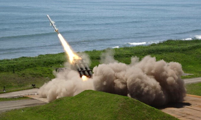 Tên lửa diệt hạm Type 88 được phóng từ thao trường Shizunai ở đảo Hokkaido, Nhật Bản hôm 24/6. Ảnh: AP