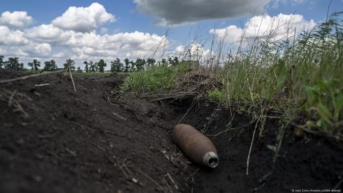 Một quả đạn chưa nổ ở Ukraine. Ảnh minh họa: Anadolu (AA)