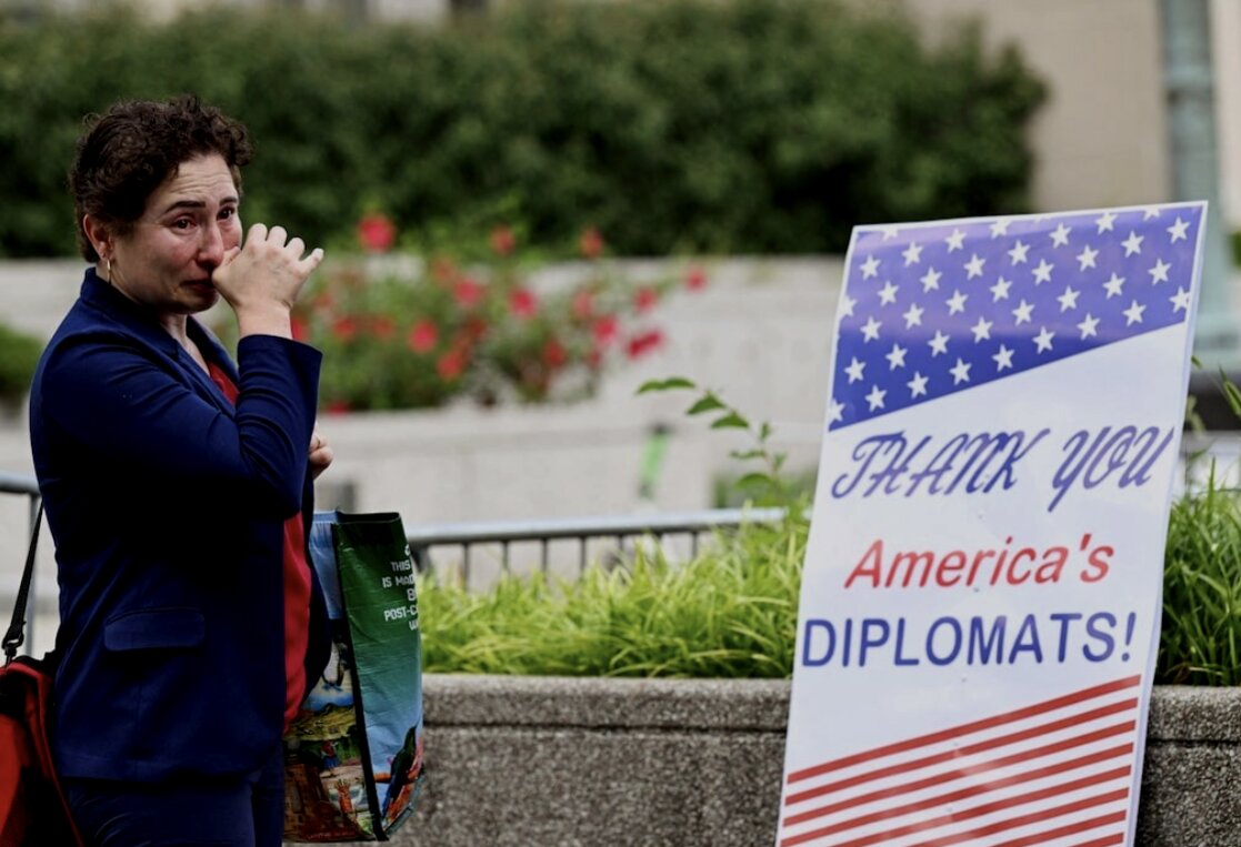 Hàng chục nhân viên Bộ Ngoại giao đã tụ tập tại sảnh trụ sở chính của cơ quan này ở Washington để tri ân những đồng nghiệp vừa bị sa thải. Hàng chục người đã khóc khi họ mang theo đồ đạc trong các thùng carton, ôm và chào tạm biệt bạn bè, đồng nghiệp.