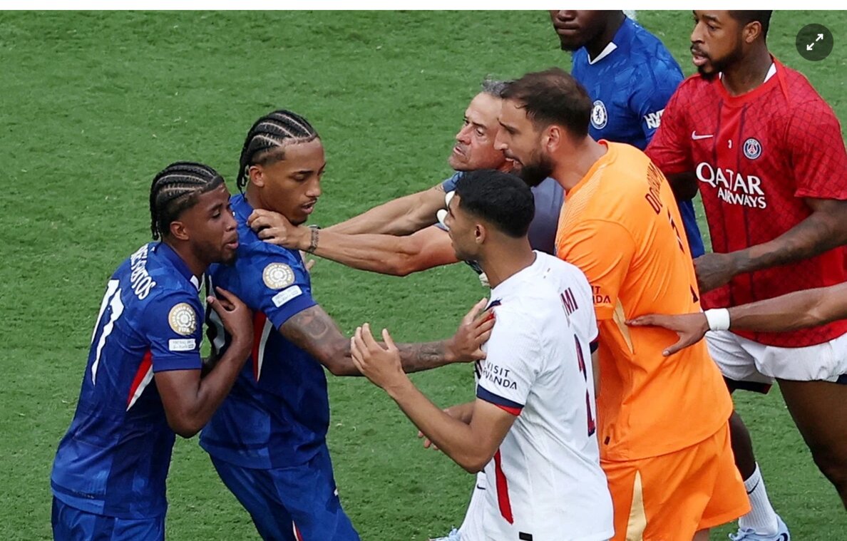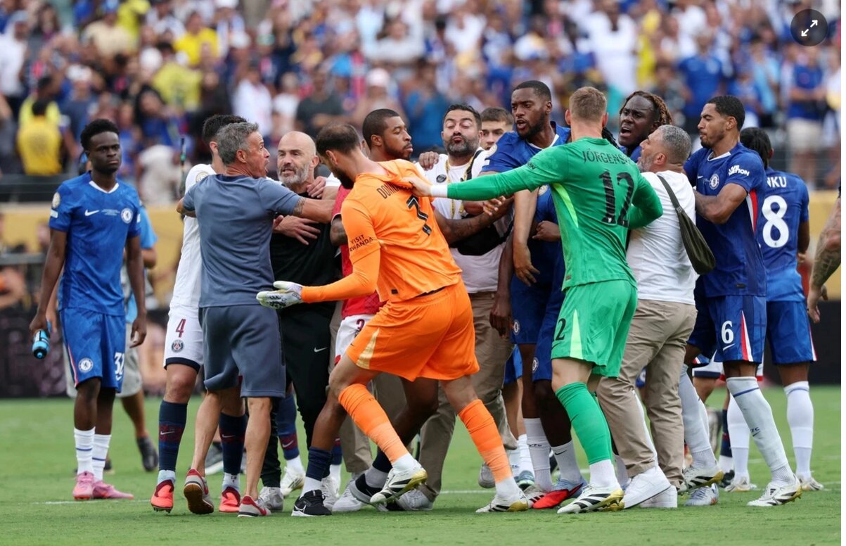 Hành động của ông Enrique châm ngòi cho một vụ xô xát lớn. Nhiều cầu thủ của Chelsea lao đến đòi nói chuyện phải quấy với nhà cầm quân người Tây Ban Nha và thủ thành Gianluigi Donnarumma.