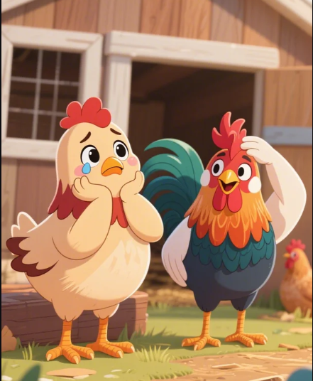 Một hôm, gà mái buồn bã hỏi gà trống: