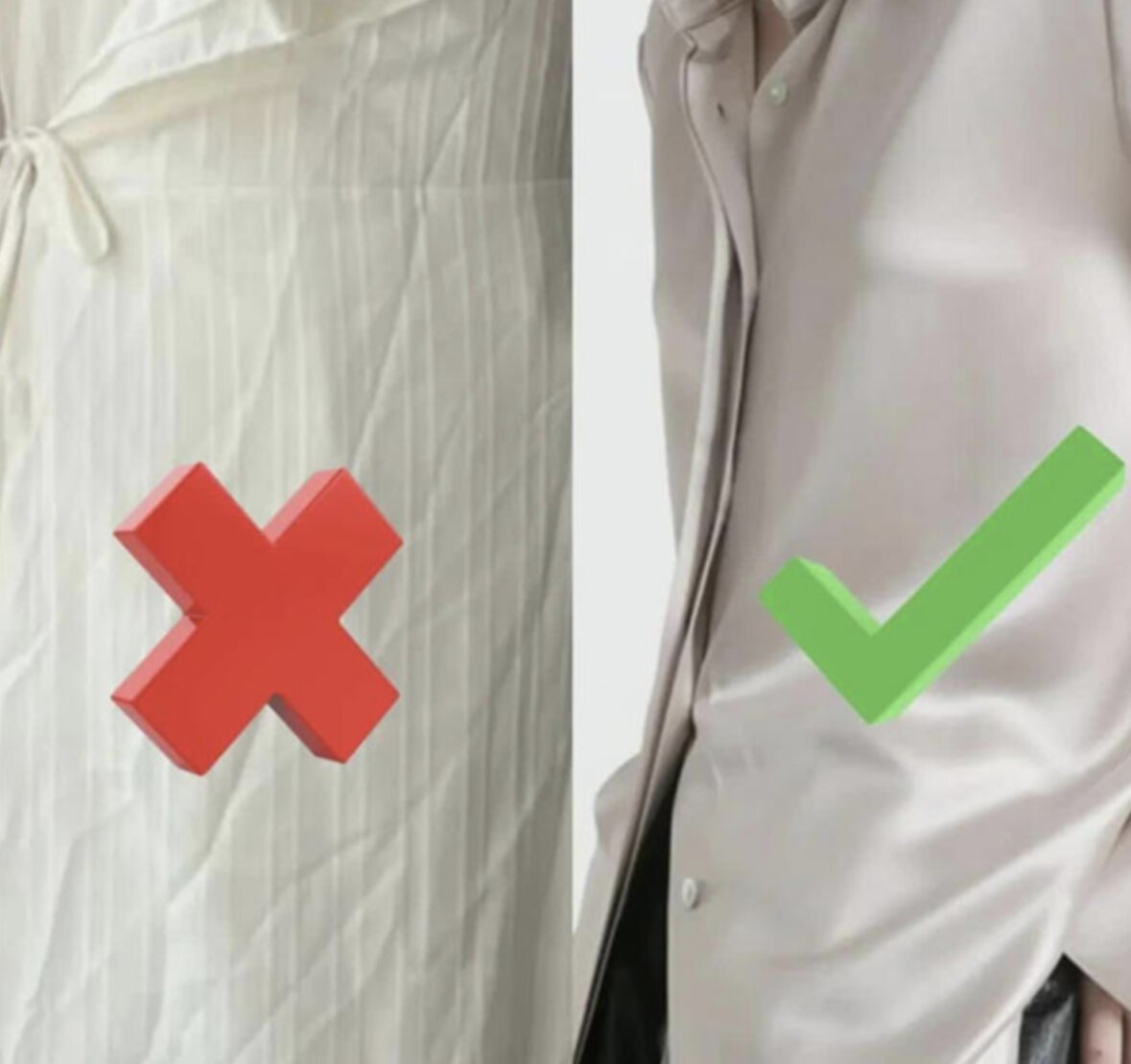 - Form xấu: Vải cứng không ôm vào cơ thể, dễ lộ khuyết điểm, khiến người mặc trông nặng nề và thiếu tinh tế.