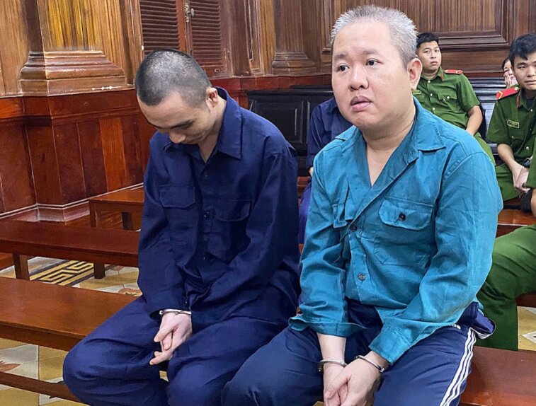 Bị cáo Phan Hoàng Phương (phải) và Lê Thành Vinh tại tòa hôm nay. Ảnh: Bình Nguyên