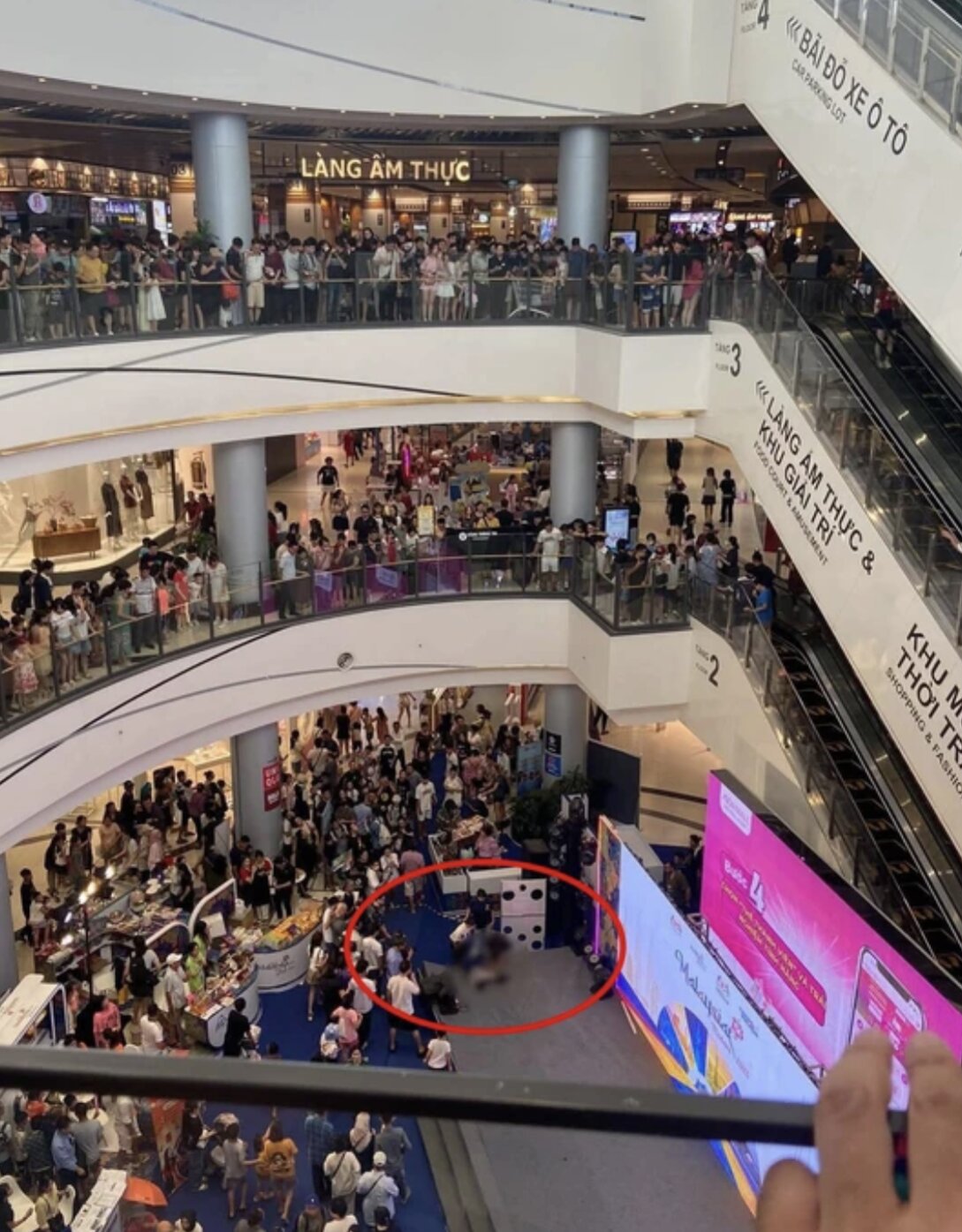 Mới đây, nhiều người dùng mạng xã hội bàng hoàng trước hình ảnh một nạn nhân bị rơi từ tầng cao của trung tâm thương mại xuống đất. Theo hình ảnh, clip lan truyền, nạn nhân rơi từ trên cao xuống vị trí sân khấu ở tầng 1 của trung tâm thương mại. Rất đông người dân đang thăm quan, mua sắm tại đây đã chạy tới hoặc đứng từ trên cao theo dõi. Sự việc xảy ra vào khoảng 13 giờ 30 phút ngày 3/8 tại một trung tâm thương mại ở Long Biên (Hà Nội).