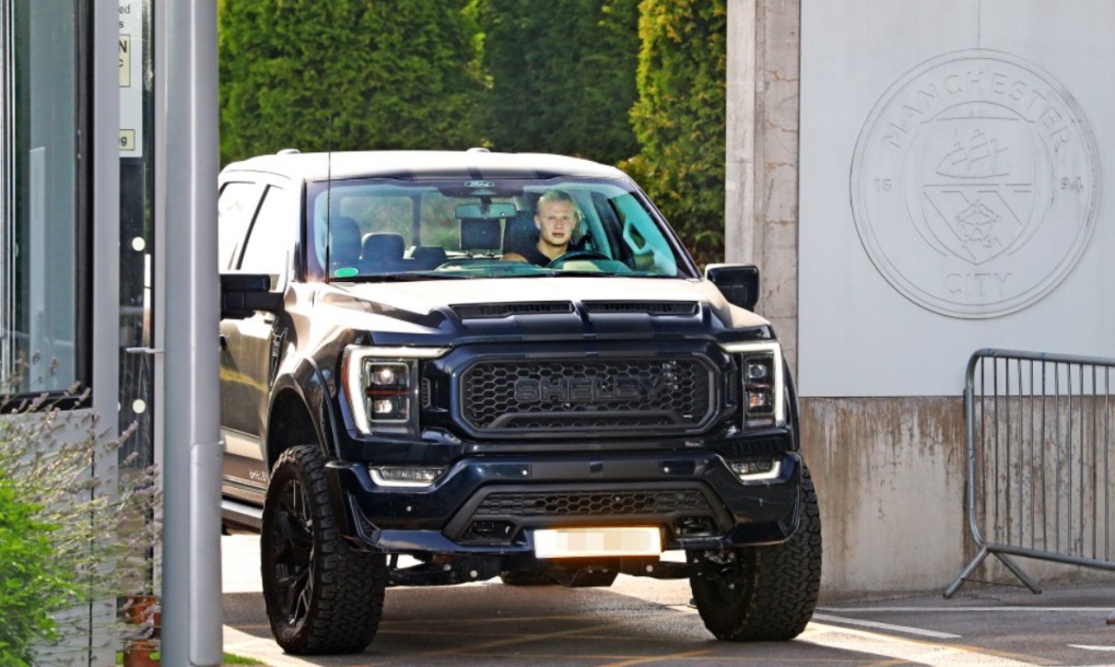 Haaland lái chiếc bán tải Shelby Super Snake F-150 rời sân tập Etihad. Ảnh: Eamonn & James Clarke