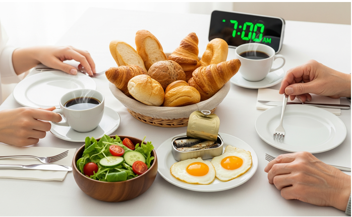 Ăn sáng đúng giờ và sớm là một trong những cách giúp bạn ngừa loãng xương - Minh họa AI: Thu Anh