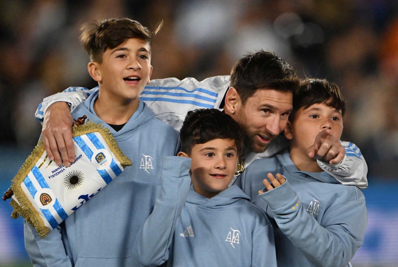 Gia đình Messi đều có mặt trong ngày đặc biệt này. Cả ba con trai Thiago, Mateo và Ciro xuống sân đứng cùng người bố huyền thoại hát quốc ca trước trận. Sau đó, các con của Messi lên khán đài theo dõi trận đấu cùng mẹ Antonela Roccuzzo.
