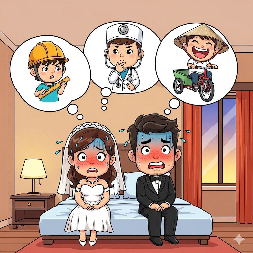 Một cặp vợ chồng mới cưới nhau đi hưởng tuần trăng mật. Trước khi đi, bố mẹ cô gái dặn dò: nếu “lúc đó” mà làm từ từ thì đứa bé sau này sẽ làm kỹ sư, nhanh hơn thì làm bác sĩ, còn nếu thật mạnh thì nó sẽ đạp xích lô.