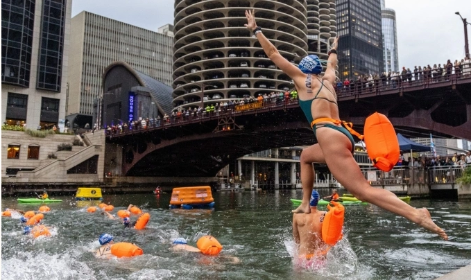 Hàng trăm người ngày 21/9 xếp hàng, hân hoan cười nói giữa tiếng kèn trống của Sở cảnh sát Chicago, trước khi nhảy xuống sông, hoàn thành chặng bơi dài 1,6 km. Đây là giải bơi lội trên sông Chicago đầu tiên được tổ chức sau 98 năm, sau khi dòng sông thoát khỏi tình trạng ô nhiễm nặng nề.