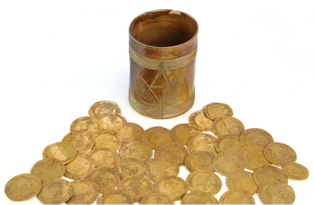 Tháng 7/2019, trong lúc sửa sang bếp, cặp vợ chồng ở làng Ellerby, hạt North Yorkshire, đã phát hiện một chiếc cốc gốm muối tráng men chôn dưới sàn bê tông và ván gỗ. Chiếc cốc, chỉ to bằng lon nước ngọt, chứa hơn 260 đồng vàng có niên đại từ 1610 đến 1727.