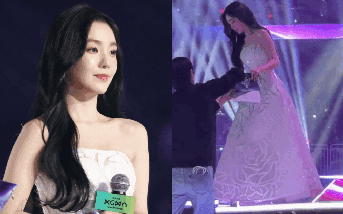 Cụ thể, Irene bất ngờ bị ngã mạnh khi bước xuống cầu thang trong lúc rời khỏi sân khấu lễ trao giải. Được biết, người đẹp trước đó gặp đôi chút khó khăn khi di chuyển vì bộ trang phục cồng kềnh. Sự cố bất ngờ khiến mọi người xung quanh vô cùng hoảng hốt, lo lắng tột độ cho nữ ca sĩ sinh năm 1991. Các nhân viên có mặt gần đó đã vội vàng lao tới đỡ Irene đứng dậy, rồi nhiệt tình hỗ trợ thành viên nhóm Red Velvet an toàn bước xuống cầu thang.