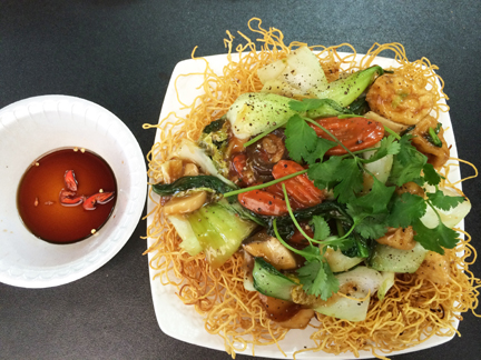 Mì xào giòn là “đặc sản” Trung Hoa nhưng du nhập vào Việt Nam từ đời nào rồi nên bây giờ được biến hóa thành món ăn Việt Nam với những gia vị “thuần” Việt. Nay lại còn có món xào chay thì cũng là sự đương nhiên thôi. Thực ra những món chay thường được phỏng theo những món mặn cùng tên, chỉ thay thế thịt bằng đậu, rau, nấm, hạt, đậu hũ... Món xào chay có thể được chế biến bằng nhiều vật liệu khác nhau, trong tủ lạnh có gì xào nấy, cũng thành món ngon được, tùy tài nêm nếm của các bà nội trợ. Có điều nên dùng nhiều đậu, hạt, đậu hũ, rau xanh... để có đủ chất đạm. Calcium có thể được lấy từ các thứ rau củ, rau xanh... Nói chung, muốn ăn chay cho đủ chất dinh dưỡng, cần phải “lên kế hoạch” món ăn và tìm hiểu về giá trị dinh dưỡng của các loại thức ăn để lấy đủ chất vào người mà không nhờ đến thịt cá. Thời ăn chay chỉ chấm tương chao là thời đã qua rồi và không được lành mạnh cho sức khỏe. Món mì xào chay có thể đáp ứng được nhu cầu dinh dưỡng tốt, tùy theo những loại rau và hạt cho thêm vào nhân.
