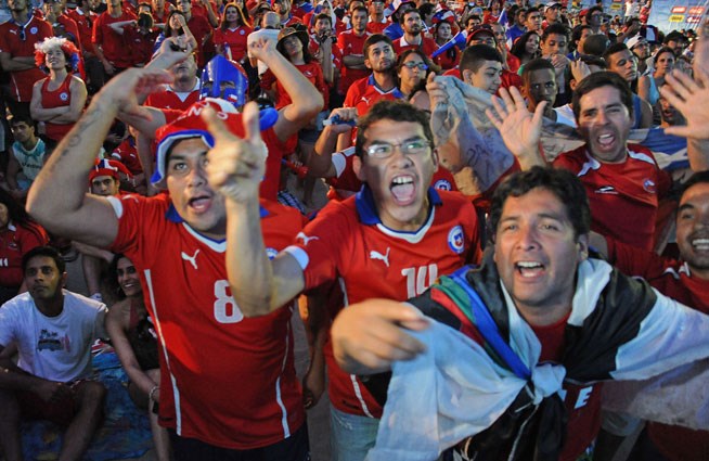 Một nhóm các cổ động viên Hà Lan không sợ hãi, nhưng họ câm lặng hoàn toàn trước những tiếng hát (hoặc hét, nếu muốn gọi như thế) của các cổ động viên Chile đang ngồi trước màn hình TV ở ngoài sân Arena Sao Paulo.