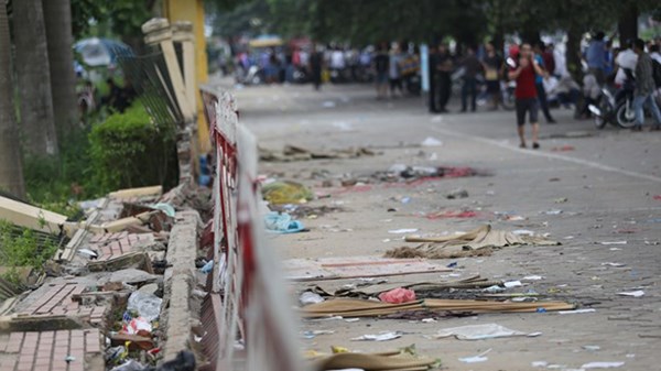 Bên ngoài bức tường đổ của VFF, người hâm mộ vẫn ngóng chờ trong vô vọng. Ảnh: Minh Chiến/Vietnam+