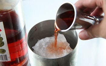 Lắc đều bình rồi đổ ra cốc và thêm soda vào cuối cùng.