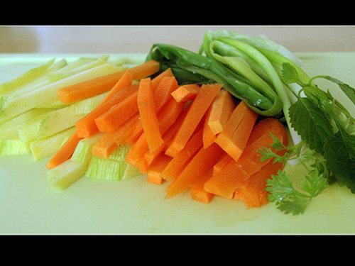Chú ý: Nhất thiết phải có rau thơm, rau kinh giới để tạo mùi cho món này nhé.
