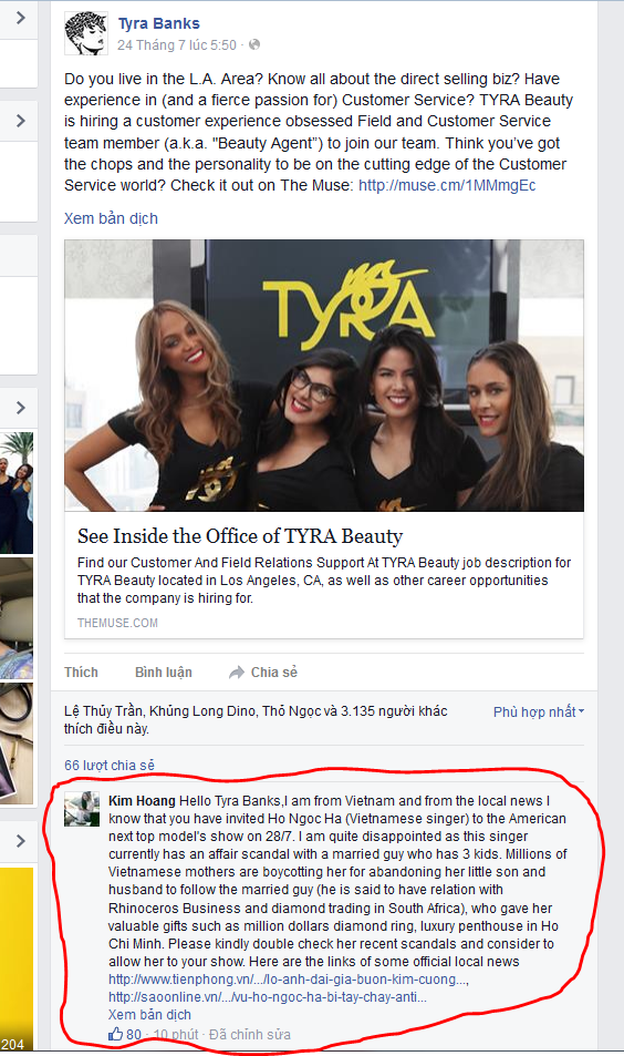 Old  Default Ném đá nảy lửa giữa fan và anti-fan trên trang của Tyra Banks về Hồ Ngọc Hà