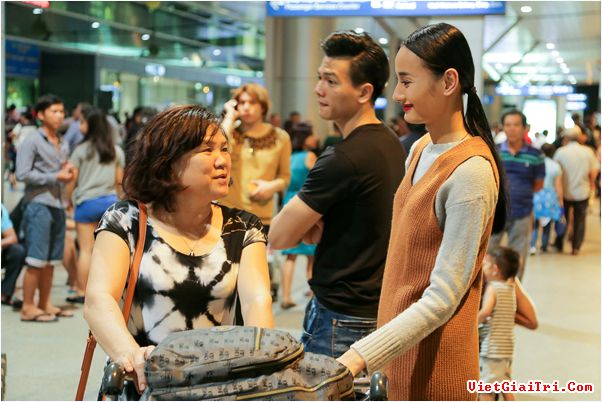 Chân dài vui vẻ làm thủ tục lên máy bay. Cô cho biết sẽ trau dồi thêm khả năng tiếng Anh và những kinh nghiệm chuyên môn để có những bước tiến dài trong sự nghiệp. 'Tôi muốn khẳng định hình ảnh người mẫu Việt Nam trên sàn diễn quốc tế'.