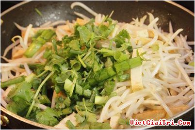 Cho hành lá, mùi tàu và một ít hạt tiêu vào đảo đều, múc ra đĩa.