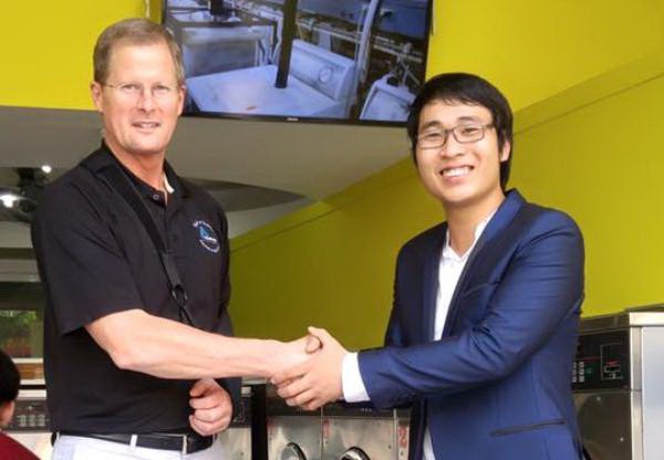 Nguyễn Anh Sơn (trái) đang gặt hái thành công từ chuỗi cửa hàng giặt sấy Laundpro trên khắp Sài Gòn – Ảnh: NVCC