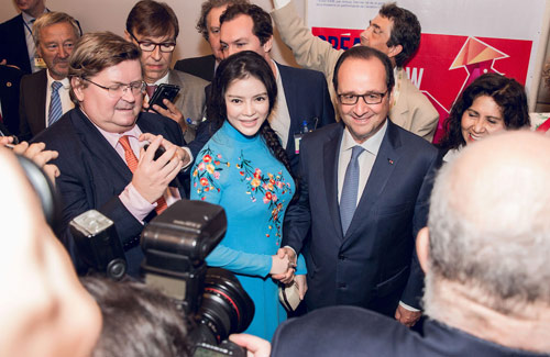 Tổng thống Pháp Francois Hollande cũng đánh giá cao những hoạt động kinh tế, thương mại với Pháp của Lý Nhã Kỳ, đặc biệt cô đang là nhà bảo trợ cho LHP Cannes.