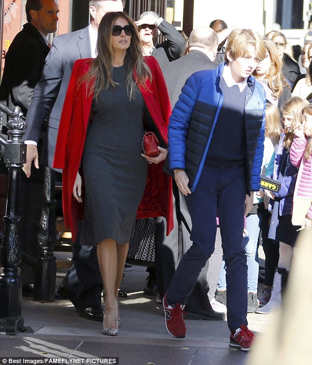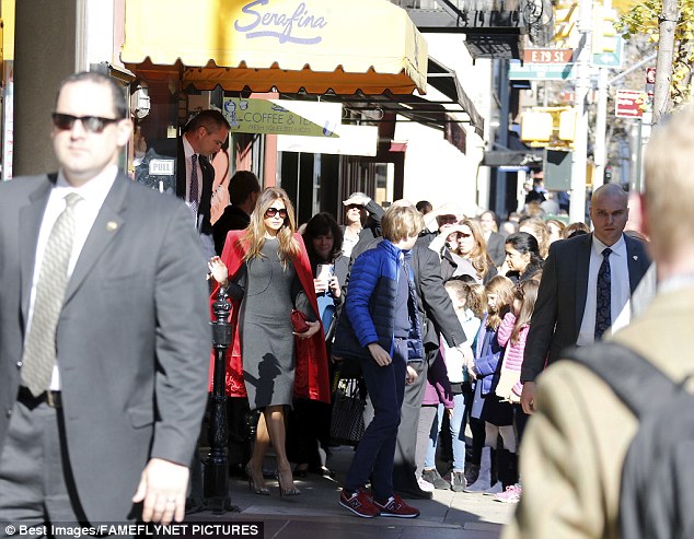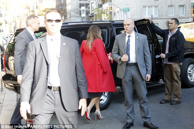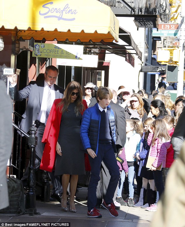 Xuất hiện sau khi ông Donald Trump đắc cử Tổng thống, bà Melania cùng cậu con trai Barron đều được các nhân viên mật vụ Mỹ bảo vệ, theo sát khi cả 2 vào và ra khỏi Serafina.