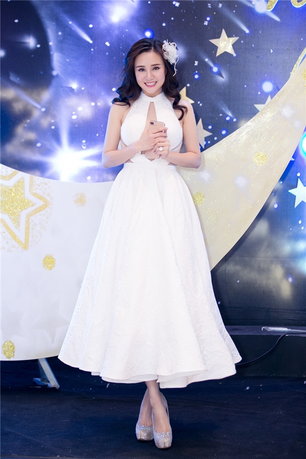 Ngọc Hân gợi cảm với váy ren trắng khi xuất hiện tại một event. Hoa hậu khoe khéo bờ vai thon thả và nụ cười ngọt ngào.