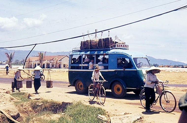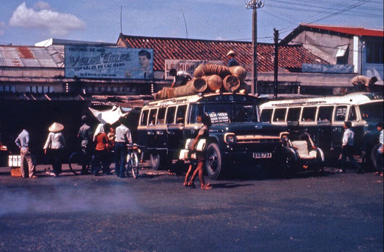 Các phương tiện giao thông ở Việt Nam hồi những năm 1960 rất đa dạng với các loại xe đò, xe lam. Trong ảnh, một xe đò chở khách tuyến Mỹ Tho - Sài Gòn. Ảnh VT
