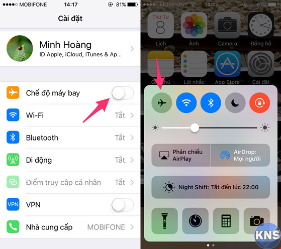 Để kích hoạt, bạn hãy truy cập vào phần Settings (cài đặt) > Airplane mode (chế độ máy bay) > On (bật) hoặc thực hiện việc này trực tiếp ngay trên Control Center.