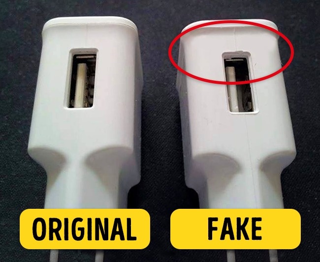 Sạc chính hãng luôn được gia công rất tỉ mỉ, nếu bạn thấy cốc sạc đó có quá nhiều kẽ hở, nhấn tay vào có cảm giác nhựa không chắc chắn, rất có thể đây không phải là sạc chính hãng.