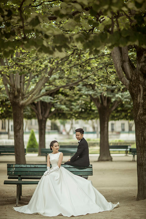 Đến nay, hơn 3 tháng sau đám cưới, những bức ảnh cưới tuyệt đẹp của “Cô gái thời tiết” mới được công bố. Được biết, trước hôn lễ, vợ chồng "Cô gái thời tiết" cùng ê kip từ Việt Nam đã sang Paris, Pháp để chụp ảnh cưới.