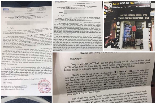 Nhiều cửa hàng tại TP.HCM nhận được văn bản khuyến cáo từ đại diện pháp lý trong việc bảo vệ quyền sở hữu trí tuệ tại Việt Nam của Apple.