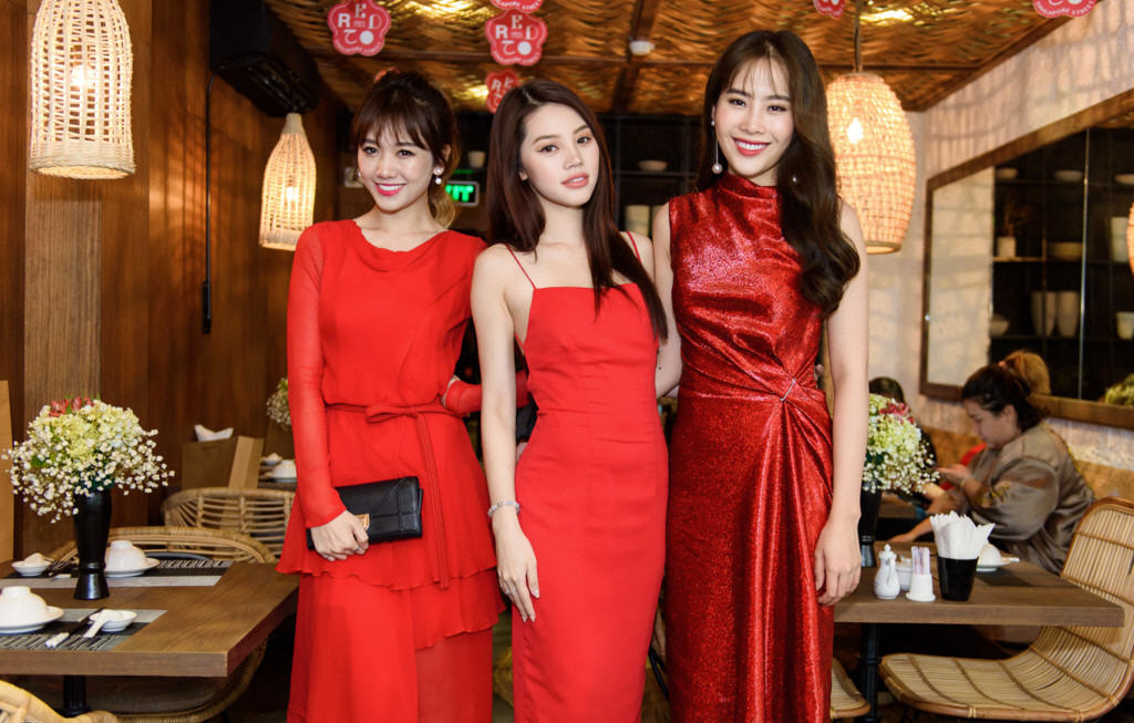 Đứng bên hai hoa hậu nhưng Hari Won không lép vế về nhan sắc. Bà xã Trấn Thành thực hiện chế độ giảm cân nghiêm khắc để có thân hình thanh mảnh.