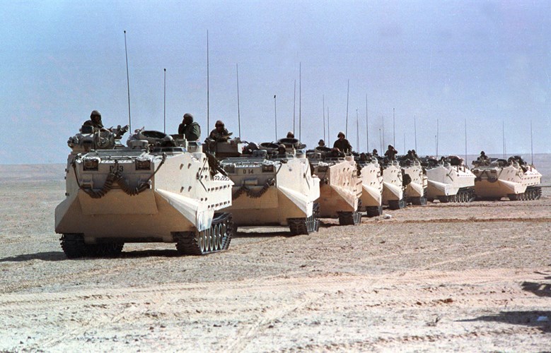 Đoàn xe của thủy quân lục chiến Mỹ chi viện cho Ả Rập Saudi.