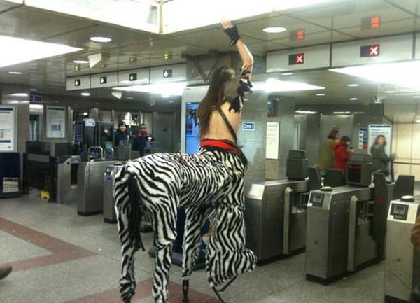 Một hành khách ăn mặc theo phong cách nhân mã.