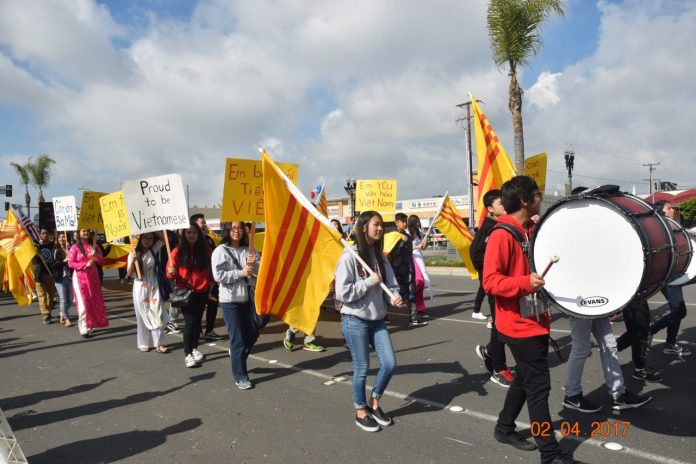 Học sinh Lớp Việt Ngữ trường trung học Garden Grove tham gia Cuộc Diễn Hành Tết 2017 ở Little Saigon.
