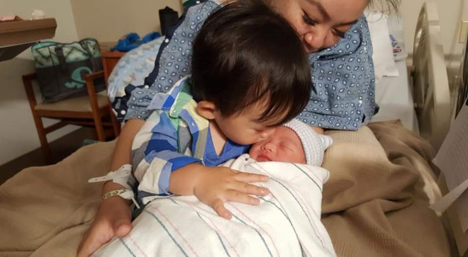 Ở bên Xuân Mai lúc vượt cạn luôn có mẹ và ông xã ở bên cạnh. Đặc biệt, con trai đầu lòng mới hơn một tuổi nhưng đã tỏ ra người lớn, đòi bế ẵm và hôn em trai.