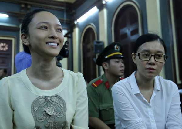 7h45 sáng nay (27.6): Trương Hồ Phương Nga (30 tuổi) cùng Nguyễn Đức Thùy Dung (28 tuổi) được dẫn đến TAND TP.HCM tiếp tục phiên xử. Vẫn như nụ cười như những lần xuất hiện trước, Hoa hậu người Việt tại Nga năm 2007 trông khá thoải mái.