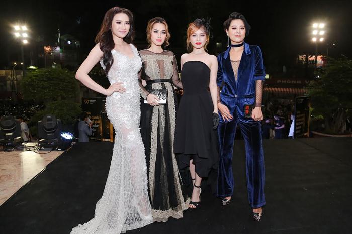 Nữ ca sỹ chọn giải pháp đứng lên bục khi chụp ảnh cùng những người bạn cao vượt trội. Tuy nhiên chính nét đẹp nhỏ nhắn, đáng yêu của Hoàng Thùy Linh đã khiến cô trông trẻ trung hơn người cùng trang lứa.