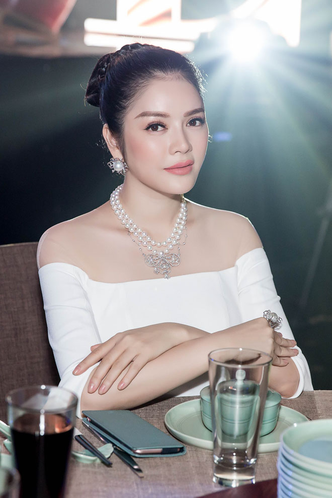 Diện váy trắng trang nhã, kết hợp với trang sức kim cương phối ngọc trai, cựu Đại sứ du lịch Việt Nam đã lập tức thu hút mọi ánh nhìn.