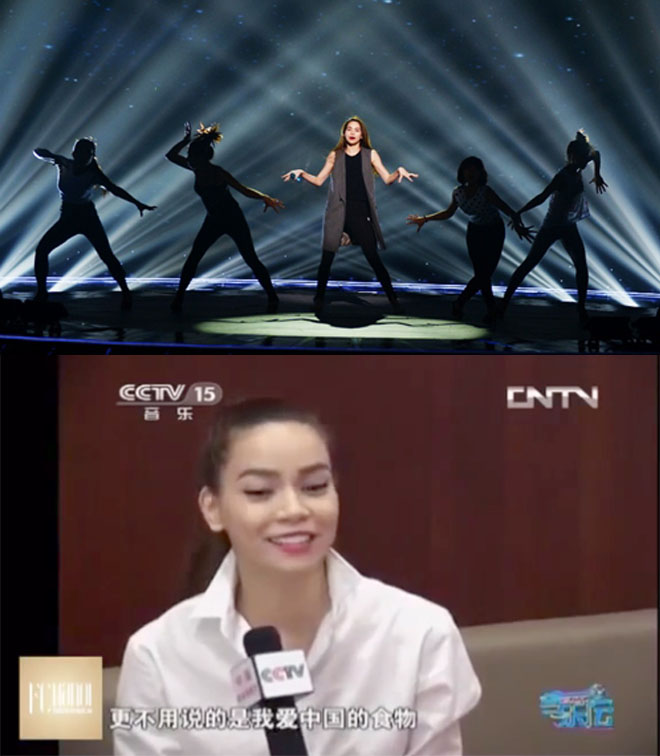 Hồ Ngọc Hà biểu diễn và trả lời phỏng vấn cho đài Truyền hình Trung ương Trung Quốc CCTV, được truyền thông gọi là "diva nhạc Việt".