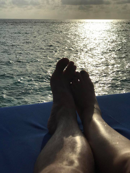 Cặp đôi đã có những giây phút bình yên tại Maldives như cùng nhau ngắm hoàng hôn trên biển.