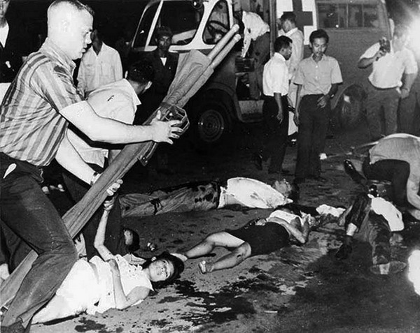 Hình ảnh Việt cộng đánh bom khủng bố Sài Gòn và các vùng đô thị miền Nam trong suốt thời gian từ 1954 đến 1975. Nhiệm vụ đánh bom khủng bố do lực lượng đặc công Việt cộng tiến hành với tên gọi mỹ miều là "Biệt động Sài Gòn". Mục tiêu của các cuộc đánh bom khủng bố thường là những nơi đông dân cư như trường học, chợ, bến xe, ngã ba ngã tư, các nhà hàng, khách sạn và các cơ quan công quyền, các cơ quan ngoại giao nước ngoài đặt tại Sài Gòn. Mục đích của các cuộc đánh bom khủng bố mà Việt cộng rao giảng trong mái trường xã hội chủ nghĩa là "Làm rung chuyển hệ thống an ninh của địch, làm rối loạn nội bộ địch, đánh sâu đánh sát vào lòng địch, giáng những trận đòn máu lửa vào những tên ngụy quyền ác ôn..." Nhưng thực chất nạn nhân của các cuộc đánh bom khủng bố này là dân thường, đa phần là người già, phụ nữ và trẻ em. Những thành phần dễ bị tổn thương nhất trong xã hội. Đó, đó là cách mà Việt cộng (cụ tổ IS) "giải phóng" chúng tôi đó.
